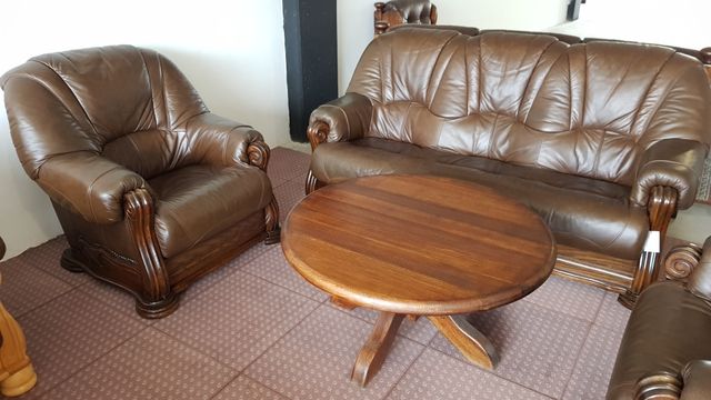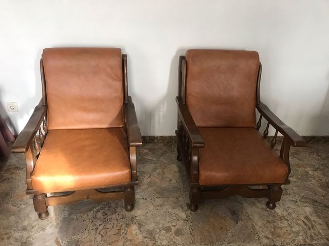 SOFA Y SILLONES MADERA Y PIEL cod:19401 segunda mano ...