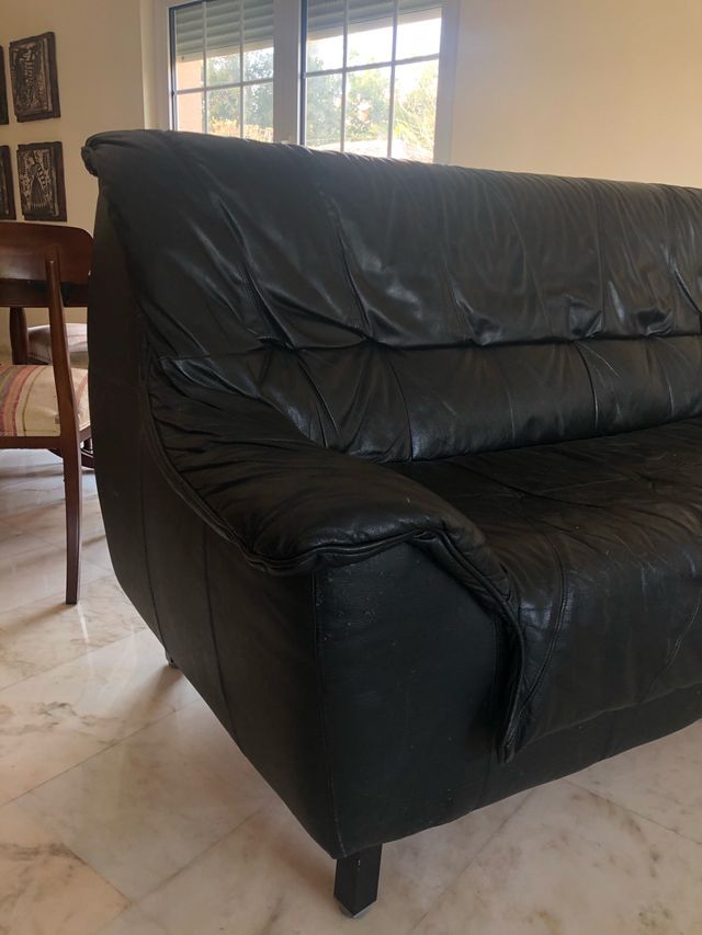 Sofá piel negro de segunda mano por 80 € en Valencia en ...