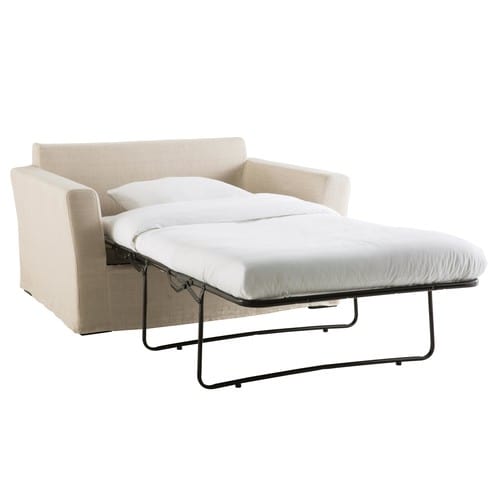 Sofá cama de 1/2 plazas de lino beige Bartholomé | Maisons ...