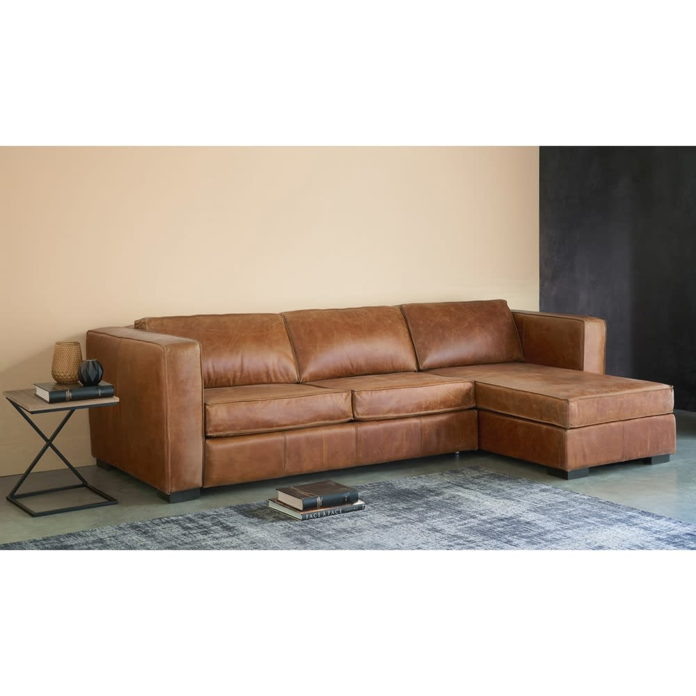 Sofá de 4 plazas de piel color coñac Wolfgang | Maisons du ...