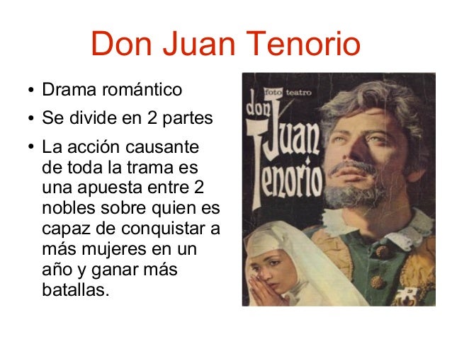 Callad, por compasión,Don Juan Tenorio que oyéndoos, me parece que mi cerebro enloquece, y se arde mi corazón. ¡Ah! Don Juan Tenorio fue uno de los autores más importantes del romanticismo, gran defensor del nacionalismo y las tradiciones, a quien José Zorrilla rescató de forma contundente en la obra que lleva su nombre y en la que podemos conocer en detalle las características de la vida del poeta. Don Juan Tenorio es, sin duda, una de las obras cumbres de la literatura española del siglo XIX.