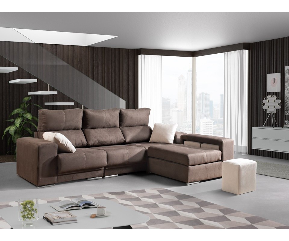 Sofá chaise longue de 4 plazas, chaise longue color chocolate